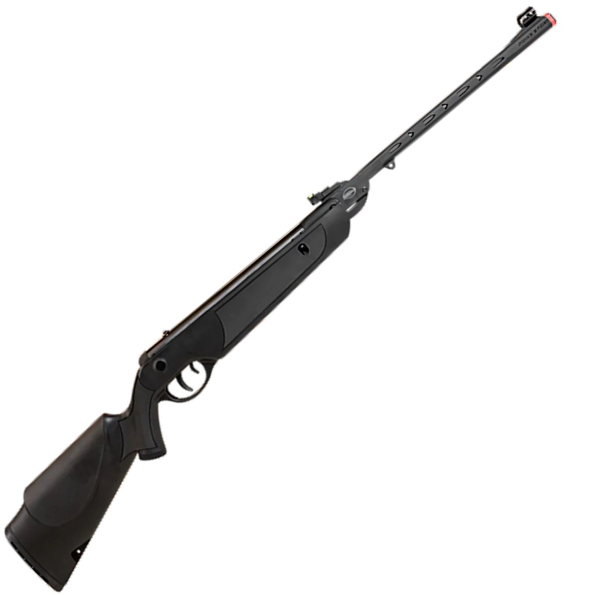 A tecnologia Gás Ram 55kg reduz significativamente a vibração e aumenta a vida útil do equipamento, mantendo o cano de 432mm em polímero e construção metal/polímero que garantem durabilidade. O trilho rabo de andorinha de 11mm permite acoplar miras ópticas, complementando o sistema de mira com fibra óptica para máxima precisão. Com 2,44kg e 1070mm de comprimento, oferece excelente balanceamento, além de recursos como trava de segurança manual, regulagem de gatilho, porta-chumbinhos integrado e zarelhos para bandoleira.